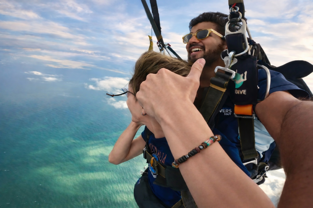 ケアンズ周辺のスカイダイビングは、「海の上に落ちる」感じの景色が強い。