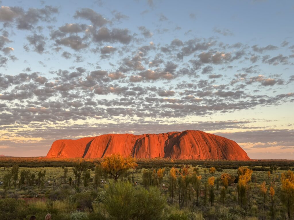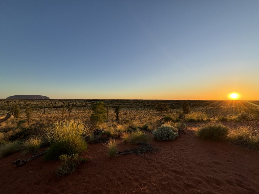 砂漠は遮るものがないので、日の出のグラデーションが刺さる。アボリジニの聖地であり、世界複合遺産にも登録されている特別な場所。